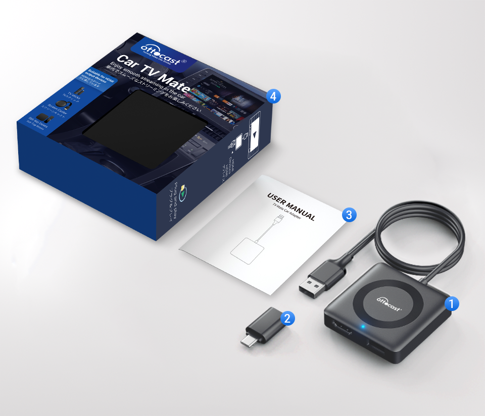 OTTOCAST® Car TV Mate Pro | HDMI Streaming & Wireless CarPlay Android Auto Adapter